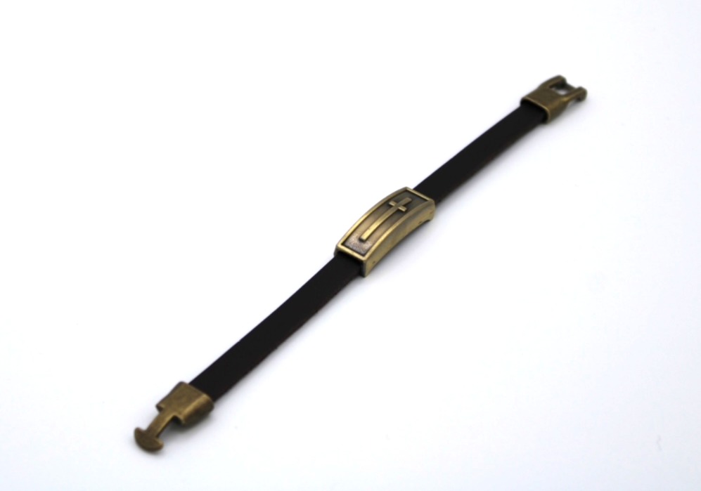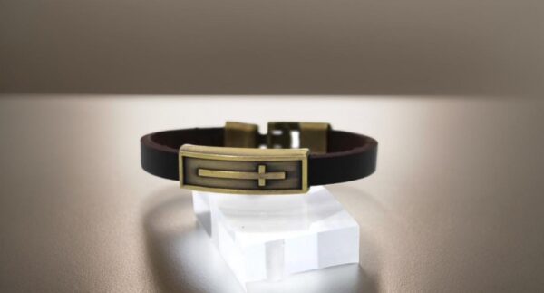 Christian Leather Bracelet – Gold Cross;