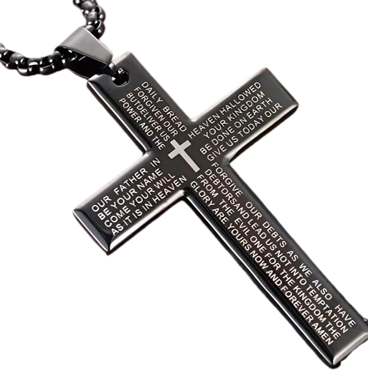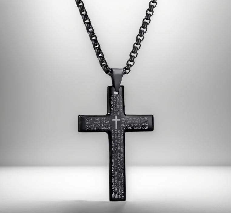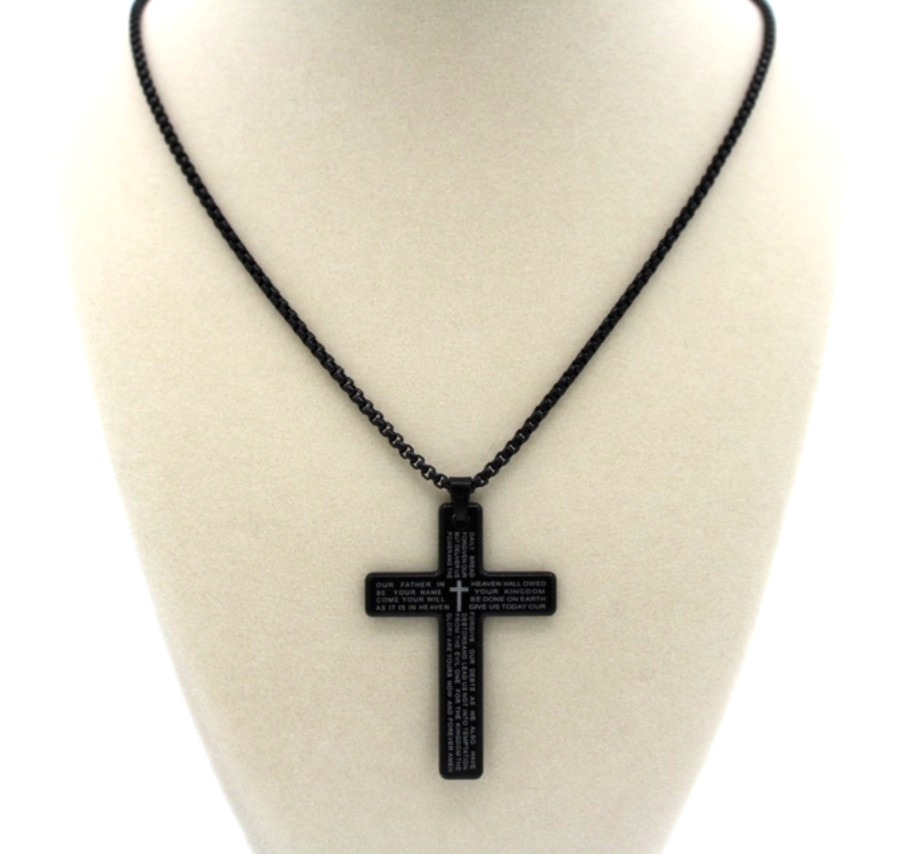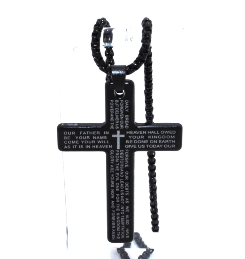 Christian Cross Bracelet Black Braided Nylon;