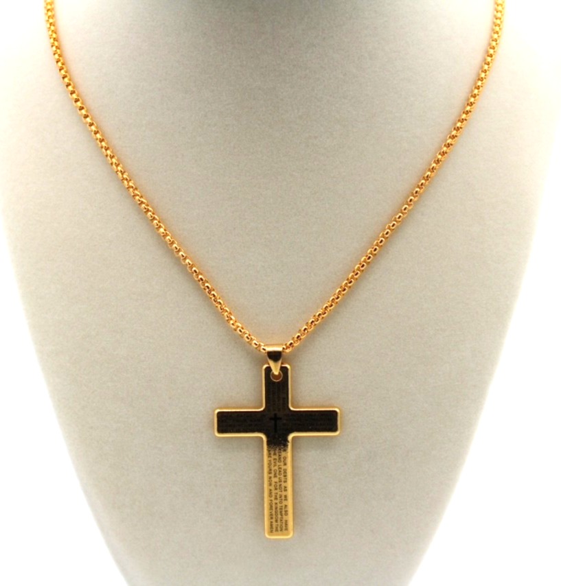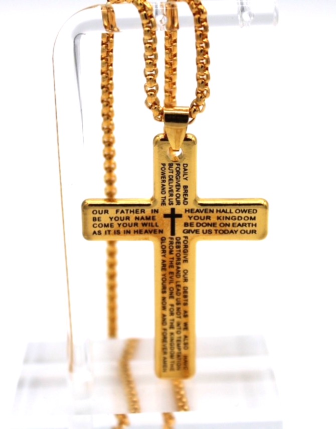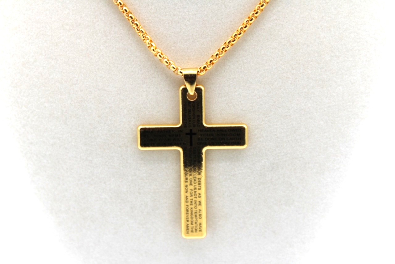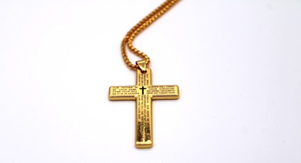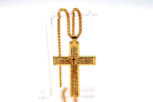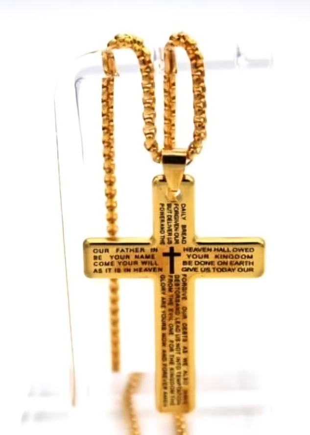 Christian Cross Pendant – Engraved Our Father Prayer;