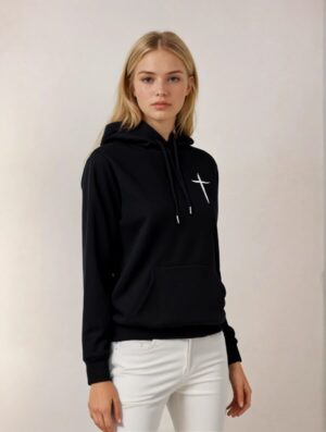 “Express your beliefs with our simple yet meaningful hoodie!!”This minimalist hoodie features a bold cross symbol on the left side of the chest, representing faith and love in Jesus. Perfect for everyday wear, this hoodie serves as a gentle reminder of your spiritual journey and devotion. Whether you’re attending church, running errands, or relaxing at home, this hoodie combines faith with casual coziness!