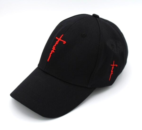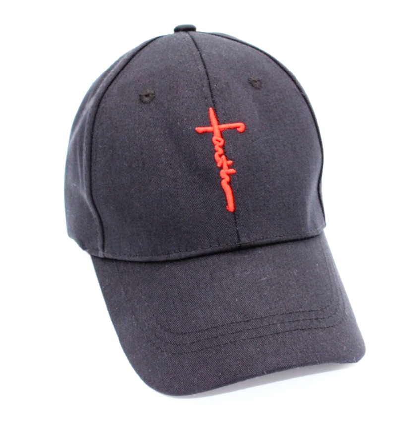 Christian Baseball Hat – Embroidered Black / Red Faith Cross;