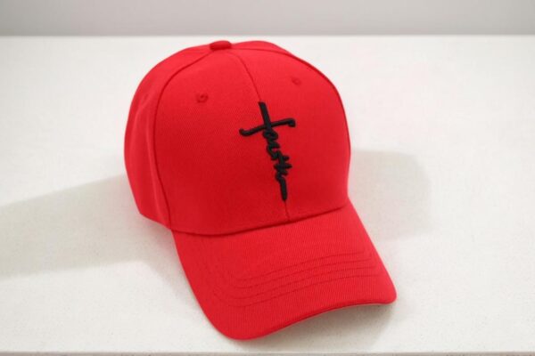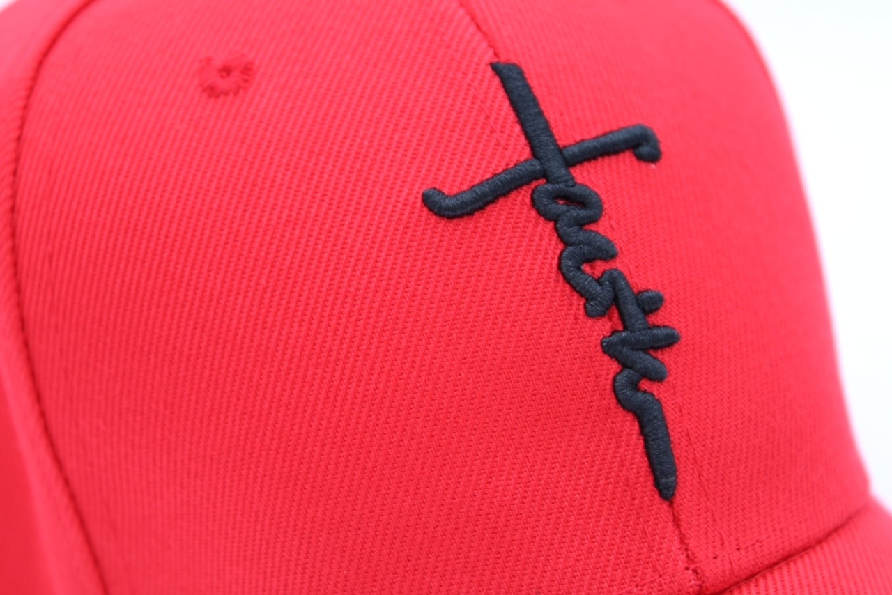 Christian Baseball Hat -Embroidered Red Faith Cross;