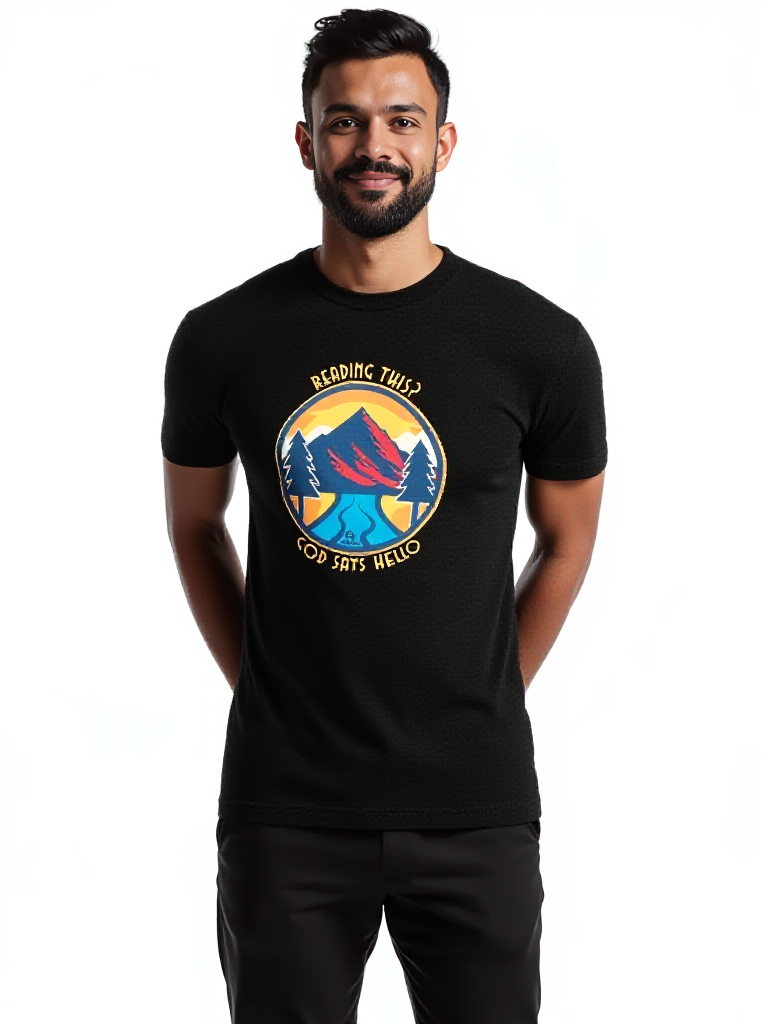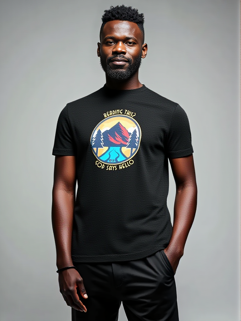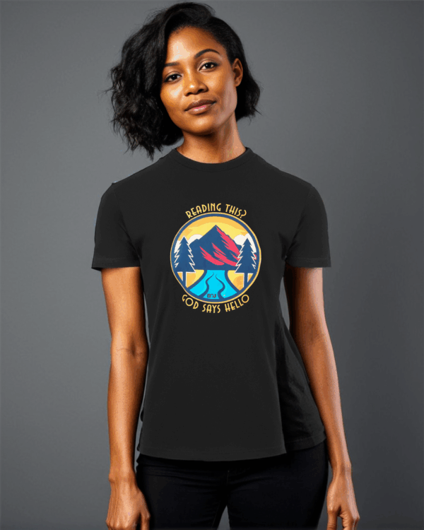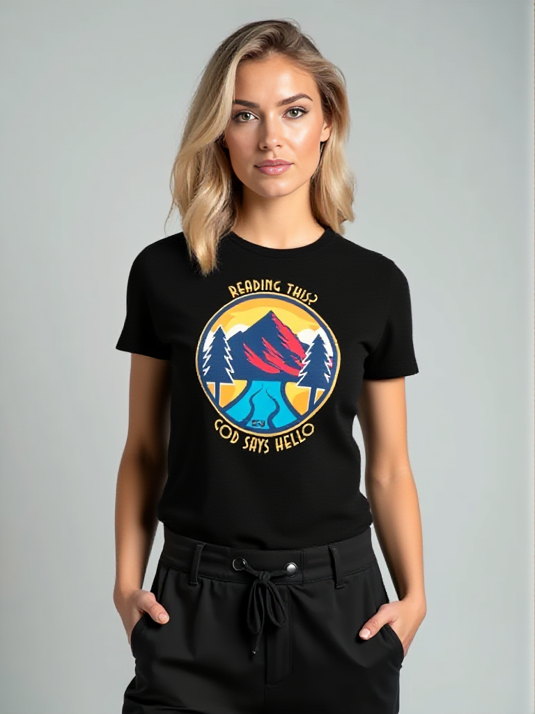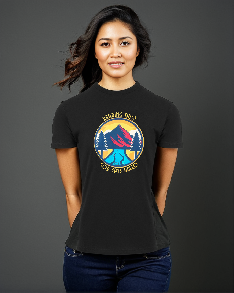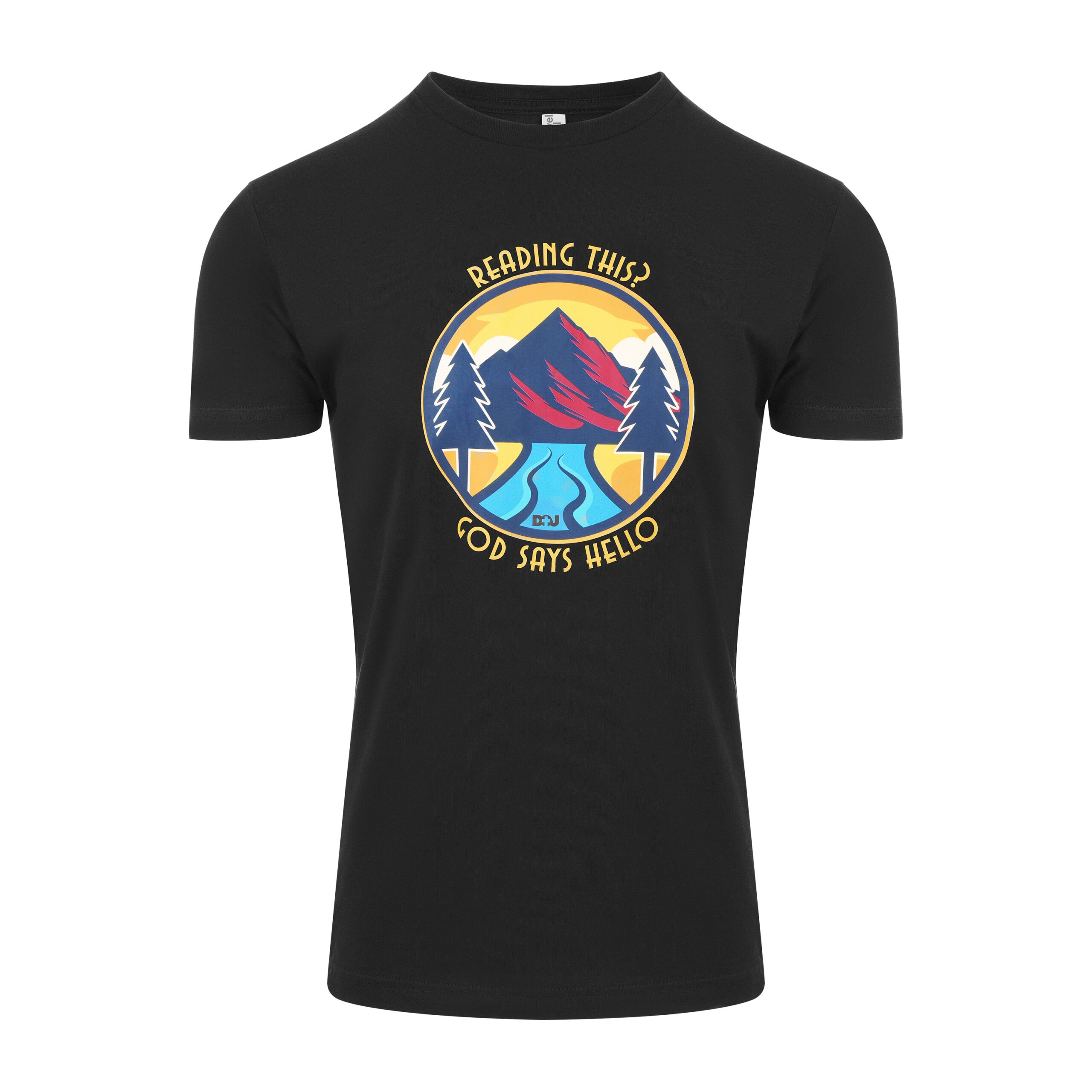 “Discover the DOJ GOD SAYS HELLO tee! Designed for reflection and reassurance, this shirt serves as a gentle reminder for all wearing it and all who see it that God is always present, thinking of you you, and never far from your side. With its simple yet powerful message, this tee encourages others to pause, think of God’s love, and feel His constant presence in their lives.