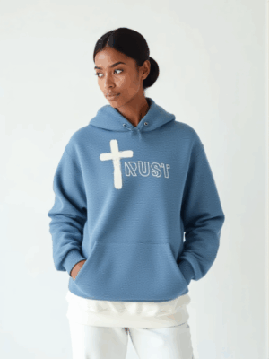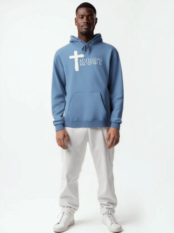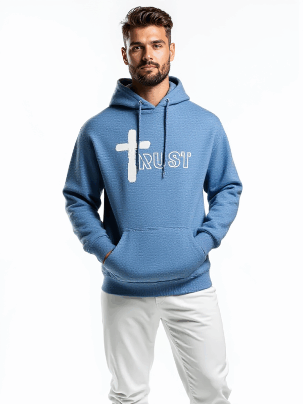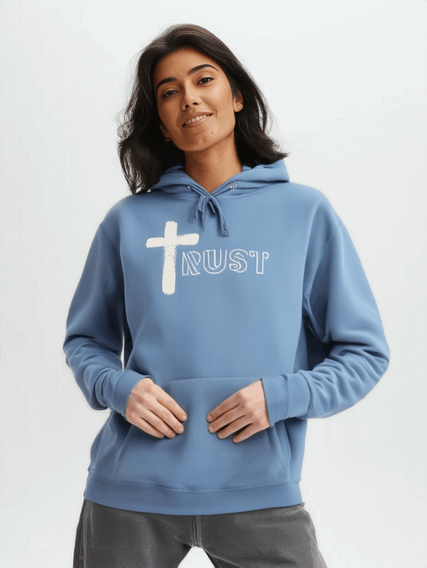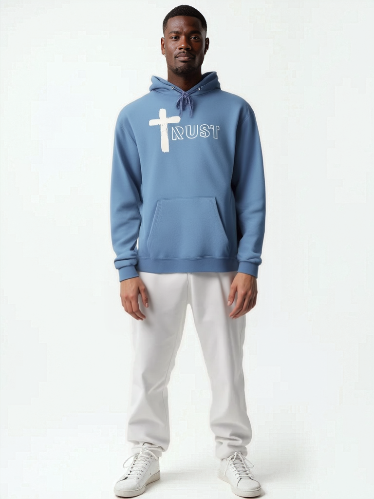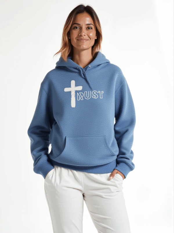 Cleberate your faith and inspire others with our stylish TRUST hoodie! Featuring the powerful word Trust across the front paired with the rugged cross symbolizing faith, hope, and reliance on God’s grace. Perfect for everyday wear or special Faith events, this hoodie serves as a heartfelt statement of your unwavering faitg,