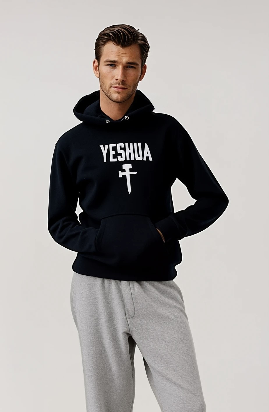 Make a meaningful statement with our eye-catching YESHUA hoodie. Featuring God’s name, Yeshua, boldly printed across the front. This hoodie combines powerful faith expression with causal style – inspiring conversations and sharing your love for God. Perfect for everyday wear, attending a faith gathering, or simply expressing your spirituality, this hoodie is a great way to keep your faith close and visible.